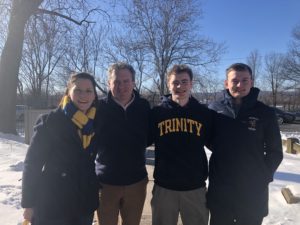 For Aidan and Charlie, being at Trinity is exciting for many reasons. “It means a lot to be here at Trinity, not just because it is a renowned college, but because both of my parents also went here…I have the ability to follow in my mom and dad’s footsteps here at Trinity,” Aidan shared. His brother Charlie added “I have been a loyal Bantam for as long as I can remember. In my opinion, one of the best things about Trinity is the strong alumni network. After I graduate, I hope to be an active alum just like my parents. Maybe one day my own children will become Bantams!” Both are enthusiastic about one day joining their parents as alumni, and being able to experience Trinity over multiple generations of their family.