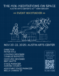 The event wayfinder provides a map of artworks and spaces in the Austin Arts Center as part of The Mix.