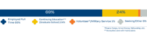 The career outcomes rate includes graduates who were employed, accepted to graduate school, participating in a service/volunteer program, or serving in the military within six months of graduation.