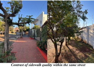 After these processes, I discovered something more complex than I expected. Residents consistently described planned residential areas as having the “best” sidewalks among other areas. Yet, my block-by-block analysis rated those same sidewalks only as “average” with extreme fragmentation even within the same street. A single block could sections that were smooth and functional as well as others that were broken, obstructed, and even poorly maintained. As another resident noted: “Some sidewalks are just horrible, you’ll stain your shoes because there’s water everywhere from the broken pipes, or trip on loose stones and fall. It’s a disaster.”