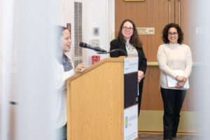 Amanda Guzman introduces the exhibit with Abby Fisher Williamson and Stefanie Chambers. Photo by Sarah McCoy.