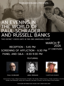 The Trinity College English Department proudly hosts discussions on timely and engaging scholarly topics, featuring presentations from distinguished colleagues in the field. These talks offer our community the chance to explore new perspectives, connect with current research, and engage in thoughtful dialogue across literary and cultural studies.