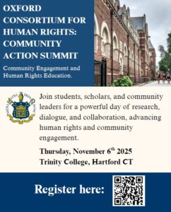 Thursday, November 6th, 2025. Oxford Consortium for Human Rights Community Action Summit: Community Engagement and Human Rights Education. Trinity College, Hartford, Connecticut.