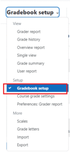 To set up a new grade item, click on the arrow symbol next to the column name and select Gradebook Setup.