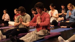 Students enrolled in Associate Professor of Theater and Dance Lesley Farlow’s ‘Yoga: Practice and Philosophy’ course during J-Term.