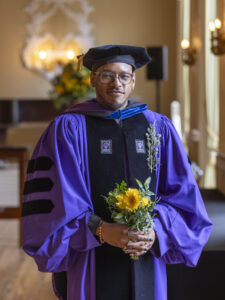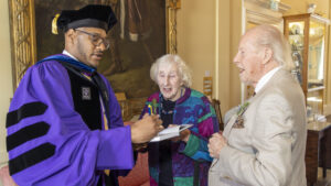 Associate Professor of English David Sterling Brown ’06 with his parents, Audreta Brown and Kevin Brown. Photo by Jeff Land Photography.