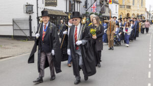 The Shakespeare Birthday Celebration Procession on the streets of Stratford-Upon-Avon. Photo by Jeff Land Photography.