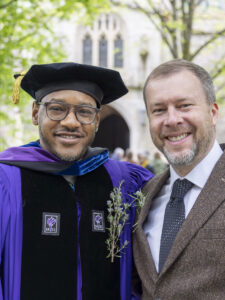 Associate Professor of English David Sterling Brown ’06 and Milla Cozart Riggio, James J. Goodwin Professor of English, Emerita, outside of Holy Trinity Church. Photo by Jeff Land Photography.