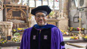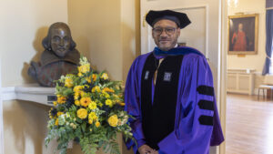Trinity College Associate Professor of English David Sterling Brown ’06 recently was invited to take part in England’s weeklong Shakespeare Birthday Celebration as its inaugural visiting scholar.