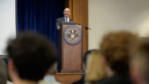 D. Holmes Morton, M.D., IDP’79, H’90 delivers the Presidential Distinguished Lecture. Photos by Nick Caito.