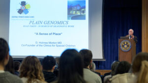Morton spoke about some of the genetic diseases and disorders he has studied for decades, including Glutaric Aciduria Type 1, and about why Amish and Mennonite communities consider young patients with these diseases to be “special children.”