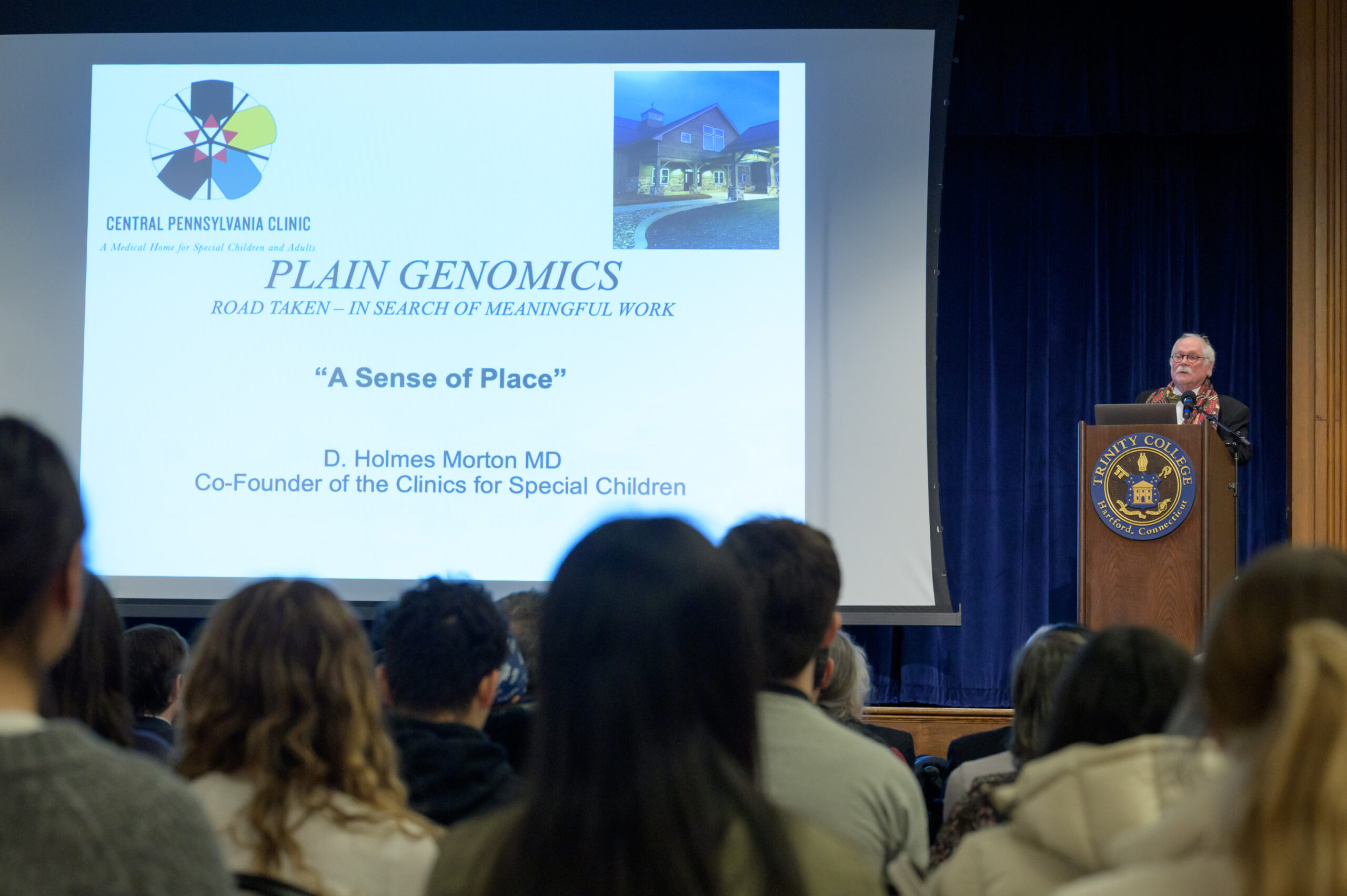 In his talk, “Plain Genomics: Road Taken—In Search of Meaningful Work,” Morton discussed his education and his career, which included founding the Clinic for Special Children in Strasburg, Pennsylvania, along with his wife in 1989. “The clinic is a place to translate the knowledge of genetics into better medical care; it is a clinic that strives to practice genomic medicine,” he said.