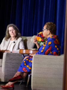 Kaja LeWinn ’98 in conversation with President Joanne Berger-Sweeney.