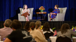 The following day, Berger-Sweeney joined LeWinn on stage in the Washington Room for a conversation about their work as scientists and leaders.