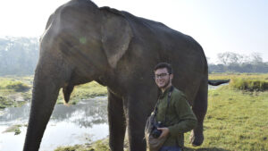 A half a world away from the urban landscape of Hartford, Joshua Jacoves ’23 spent the fall 2022 semester in the mountains, jungles, and farms of Nepal, learning the Tibetan language and studying elephant tourism.