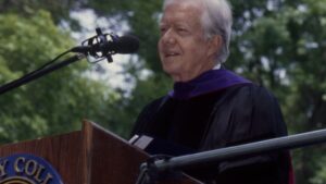 Former President Jimmy Carter gave the commencement address to the Trinity College Class of 1998, promising the seniors he would "be brief" in offering them three things to remember. He gave them four. The Trinity community remembers the late Jimmy Carter.