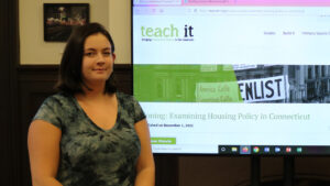 A lesson plan designed by urban studies major Victoria Asfalg ’23 will help Connecticut educators teach high school students about the history and impacts of zoning policy. The plan was published by Teach It, a Connecticut Humanities program that provides the state’s teachers with instructional resources focusing on local history.