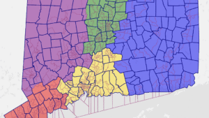 Using population data from the 2020 census, students in Trinity’s fall 2021 “Math and Redistricting” course created new Connecticut congressional district maps that they submitted to the state’s Reapportionment Commission for its consideration.