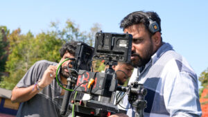 The film crew for a feature-length Tollywood production descended on Trinity College in October, capturing footage at iconic locations and soliciting student volunteers for several scenes.