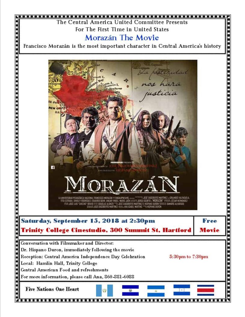 WHAT: The Central America United Committee and Trinity College’s Center for Caribbean Studies are hosting a Central America Independence Celebration, beginning with a screening of Morazán, the historic biopic about Francisco Morazán, considered to be the most important figure in Central America’s history. In 2017, the movie was Honduras’s first-ever Academy Award-nominated film. A conversation with filmmaker and director Hispano Durón will follow the screening. After the discussion with Durón, a festive reception will take place, featuring Central American food, remarks by special guests and dignitaries, and the playing of the national anthems of five Central American countries. All events are free and open to the public.