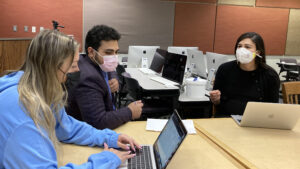 Community Learning Research Fellows Jane Dunbar ’23 and Sulemaan Khalid ’23 with their faculty advisor, Postdoctoral Fellow in Urban Studies Laura Delgado.
