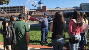 Header photo: Jack Hale ’70 talks about the history of Coltsville to the Cities Gateway Program students.