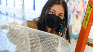Brenda Ordoñez-Guillén ’22 is a Chicana artist based in Hartford. Many of her works delve into the exploration of resilience as a central theme. Her creations weave together visual and sculptural elements to illuminate the diverse facets of resilience within the immigrant experience.
