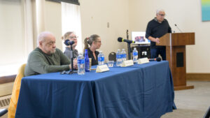Prakash Younger, associate professor of English and director of Trinity’s Film Studies Program, moderates the panel discussion. Photo by Nick Caito.