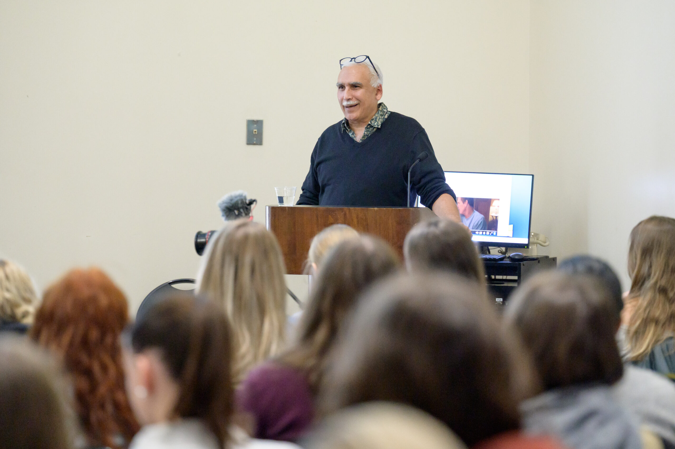 Writer and director Paul Schrader speaks at Trinity College. Photo by Nick Caito.