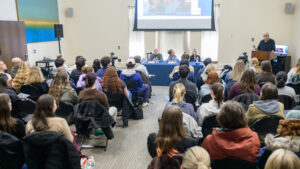 Students and other members of the Trinity community filled the Rittenberg Lounge in Mather Hall to see the panel discussion.