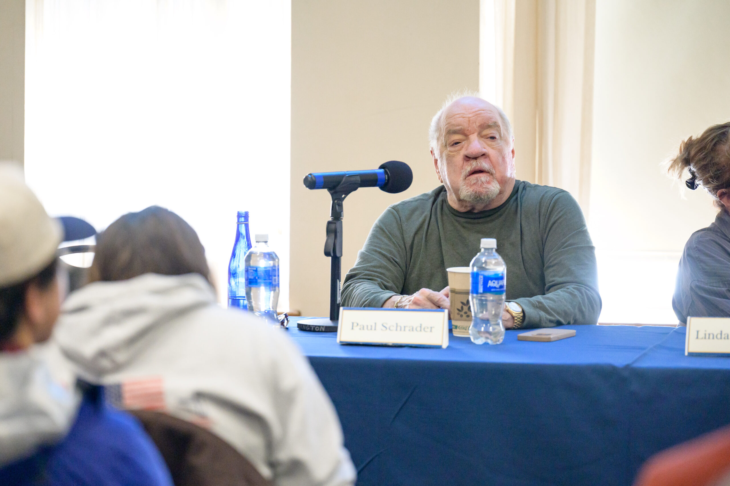 Filmmakers Paul Schrader, Linda Reisman, and Caerthan Banks participate in the panel discussion.