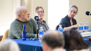 Filmmakers Paul Schrader, Linda Reisman, and Caerthan Banks participate in the panel discussion. Photo by Nick Caito.