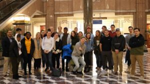 During the recent tour of the LOB and State Capitol, Kent Shi ’20 explained that he had never liked math before taking this course. Shi said, “I’m a public policy & law and Hispanic studies double major and so I had experience interning here for a lobbying firm and for Hartford City Councilwoman Wildaliz Bermudez [’04]. I knew I also wanted to have some more quantitative experience, so I decided to join Kyle’s class. This class has shown me that I actually love math and how it’s useful in these big political issues.”