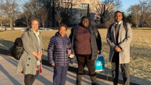 Assistant Professor of American Studies and Human Rights Christina Heatherton, Trinity President Joanne Berger-Sweeney, Renita Washington ’22, and Caleb Prescott ’22 in Washington, D.C.