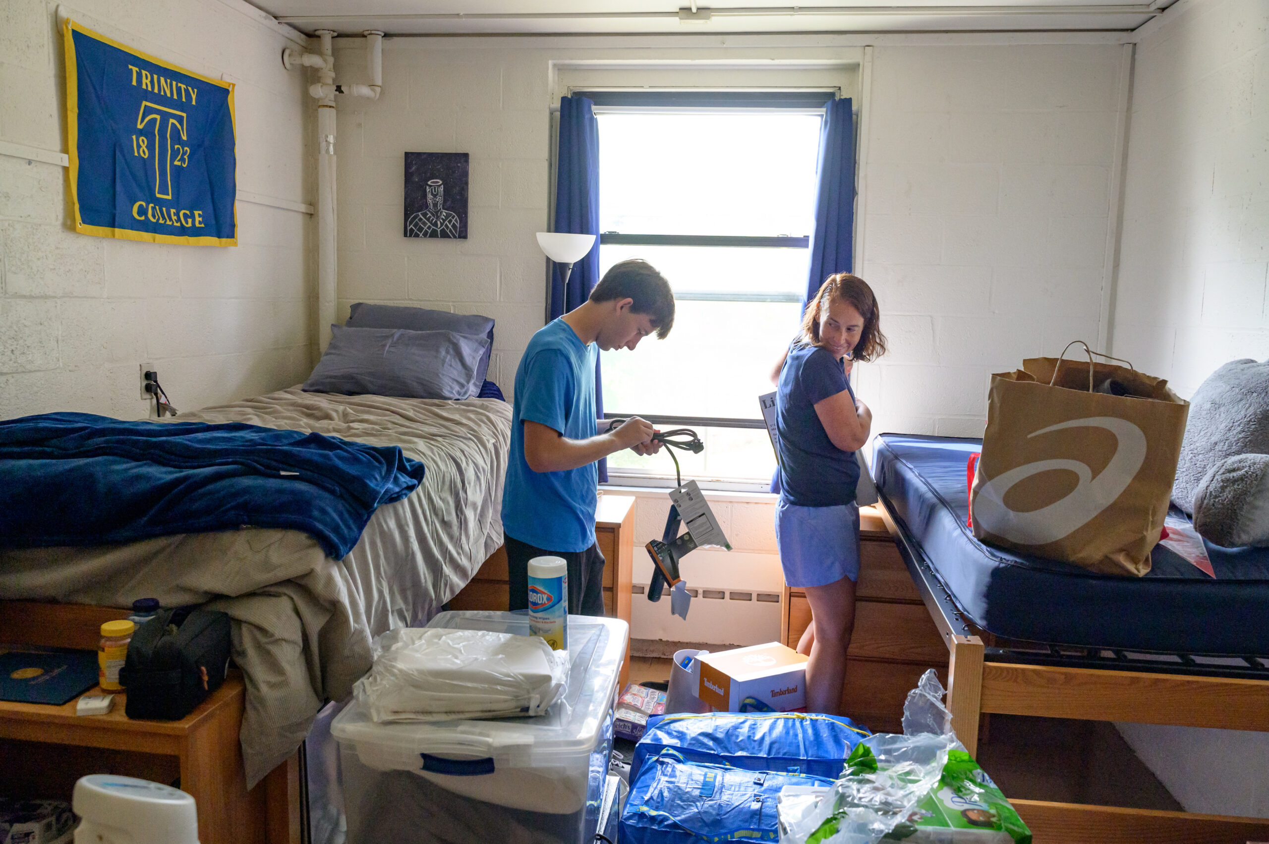 On Sunday, Trinity College shed the quiet cloak of summer as a flurry of new students began arriving with boxes, bags, family members and furry friends in tow.