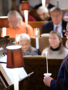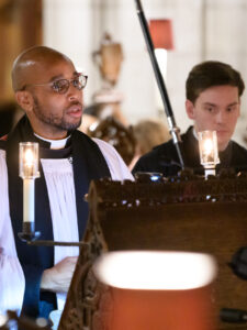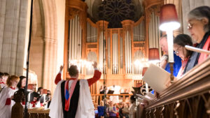 The festival was the first event at the Chapel to showcase a new silver-topped staff donated by Trinity alumnus Brendan W. Clark ’21.