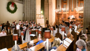 Lessons and Carols is offered to all as a moment of comfort and hope. In its recounting of the Christmas story, the service involves the reading of nine lessons, each followed by the singing of a carol. Contributions to a freewill offering supported students in need, as well as international humanitarian relief efforts.