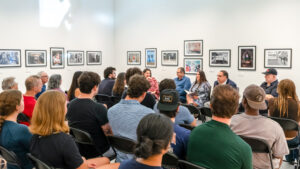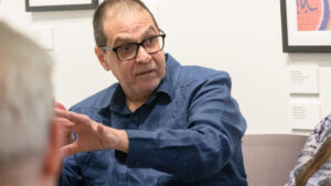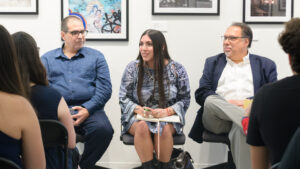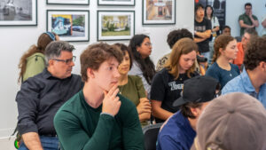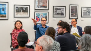 Throughout the panel, González pointed out specific images in the gallery and began to tell the audience the stories about the people and situations reflected in them. He emphasized the necessity of building relationships with the communities he photographed before capturing people in their own environments.