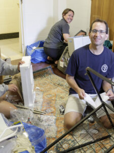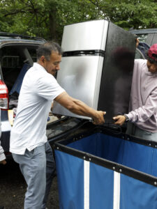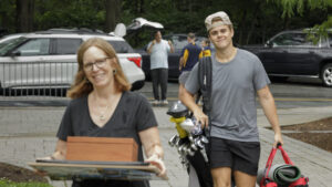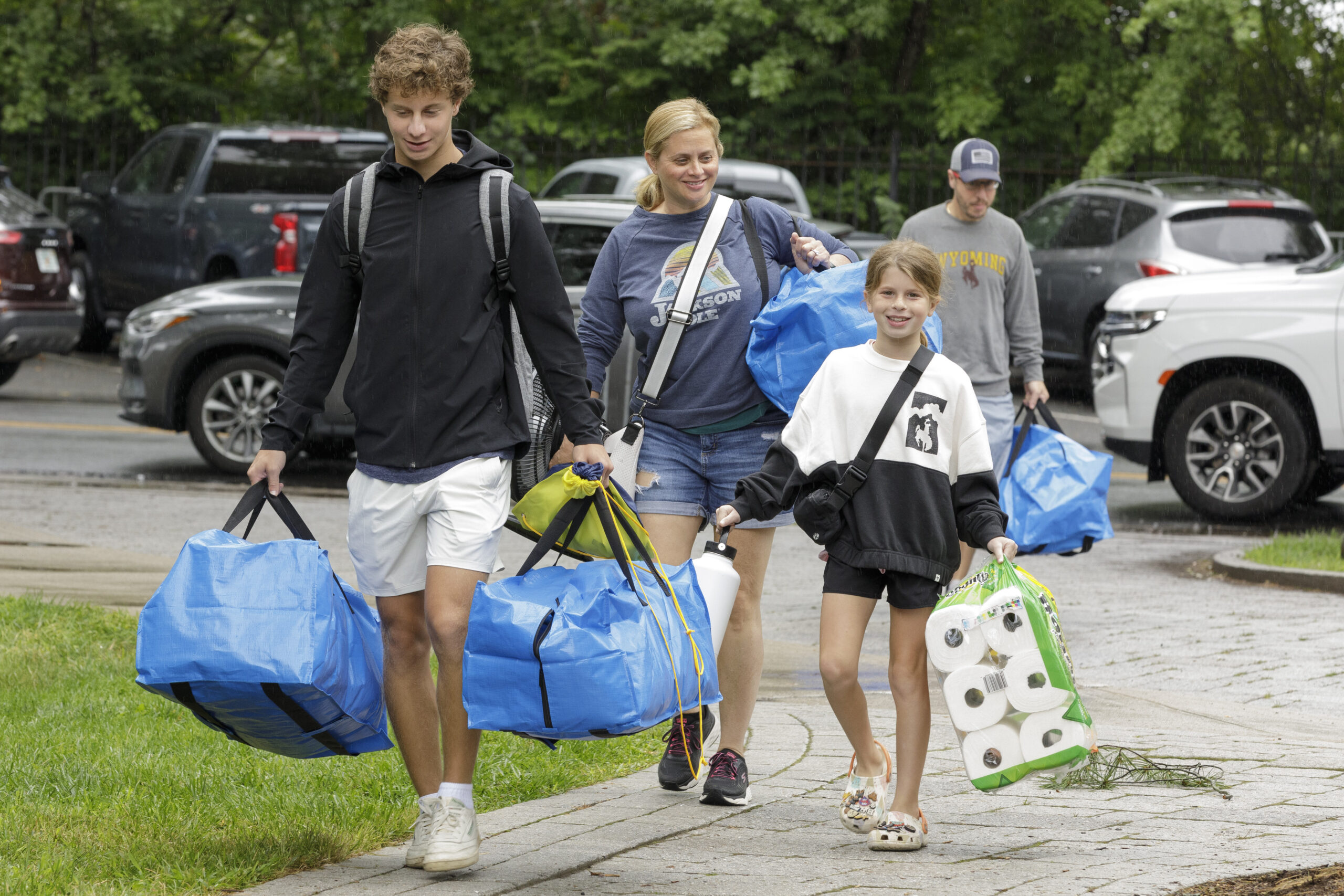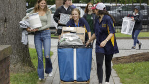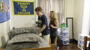 Trinity College’s newest students arrived on campus under leaden skies on August 25. In preparation for the forecasted rain, some toted belongings in garbage bags while others bundled boxes and mini refrigerators into wheeled bins and into their residence halls.