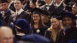 “What sears that day into my mind was when President Carter started the speech, literally the clouds parted and the sun came out,” says Carlos Espinosa ’96, M’98, director of the Trinity College Office of Community Relations and Trinfo.Café, who received his master’s degree that day. “I distinctly remember sitting in a row where the sun broke through the tree canopy and was beating down on me in my black robe.”