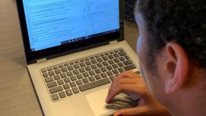 Stephen Tyler ’21 analyzes and writes up ecological data by making plots and running statistical tests using the software R.