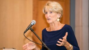 During her talk, Sheppard spoke of the obstacles that female student-athletes had to overcome, including a lack of staffing and resources. At the age of 22, Sheppard was named head coach of the field hockey, women’s basketball, and women’s lacrosse teams, taught physical education classes, and took graduate classes at night.