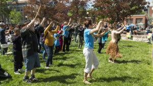 Attendees will have opportunities to participate in the music and dance by taking dance workshops with Capoeira Esperança, led by Mestre Efraim Silva with Professores Robozinho and Fominha or joining a “Big Bang” community drumming encounter, slated to kick off at 11:30 with an open rehearsal, which will lead into the big drumming celebration from noon to 12:30 p.m. Said Galm, “Buckets and sticks will be available, but those who can bring their own are encouraged to do so.” Community drumming presentations will take place from 11:00 to 11:30 a.m., featuring Hartford’s Proud Drill Drum & Dance Corp, Wilby High School in Waterbury, directed by Eric Brummitt, and others.