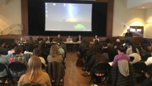In response to an audience member’s question, a divide emerged among the panelists. When asked about the potential for change, Ergul responded, “I don’t have much hope for Turkey. An internal solution is not possible at this time.” Bedirhanoglu echoed his sentiment, noting the impending elections in Turkey and her lack of hope that the election will change anything. Comert offered a different view, saying, “I feel the pessimism from time to time, but at the same time there have been signs of weakness in the government… [and] there are many important and brave people who are daring to stand up to the current regime,” which gives him hope for change.