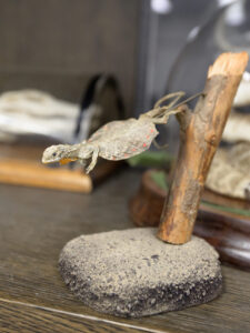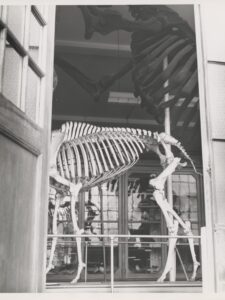 Other pieces in the collection have not been located. Two of the models pictured in popular black-and-white images of the Boardman Hall interior, for example, have not been found: a giant ground sloth and giant armadillo, both from the Pleistocene Era.