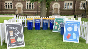 Trinity is encouraging behavior change with the establishment of student eco-rep positions. These peer educators identify and pursue new ideas within the College community. Student-led initiatives include partnering with campus coffee shops to promote the use of reusable containers, and challenging sports teams to do away with single-use plastic water bottles at competitions. Pollinator gardens, a campus food pantry, and the reuse of items discarded during move-out are additional successful programs.