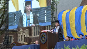 Berger-Sweeney told the graduates that they are the legacy of all who have come before them, and they carve the path for those who will follow. “The world is waiting for you—for your passion, for your persistence, and for you to engage it with gusto,” she said. “Life will not always be easy, and it will not always be perfect. But you must believe that you can make a difference in the world. Take the lessons of intellectual engagement, persistence, and leadership that you’ve learned here, and pay it forward with determination and heart. Be filled with hope for the future, gratitude for the lessons of the past, and joy for the journey we’ve shared.” Berger-Sweeney will officially retire at the end of June. (Watch her speech.)