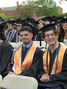As the degrees were conferred, the valedictorian and salutatorian of Trinity’s Class of 2025 were recognized for their outstanding academic achievements. Jacob Kaplan, of Connecticut, who earned a B.S., summa cum laude, in neuroscience, was named valedictorian; Jacob Loor, of Texas, who earned a B.A., summa cum laude, with honors in political science, was named salutatorian.