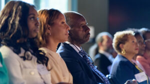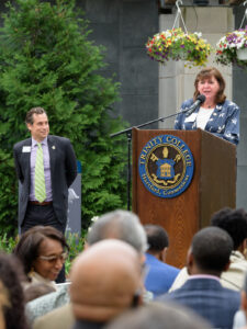 Prior to the dedication, Dean of Admissions and Financial Aid Matthew Hyde moderated a symposium titled “Affordability & Action: Financial Aid as Fuel for Admission, Access & Belonging.”  A panel of experts examined the role of financial aid in providing access to a college education and the importance of making students and families aware of the resources available to them. “People won’t apply if they think they can’t afford it,” said panelist Phillip Levine, the Katharine Coman and A. Barton Hepburn Professor of Economics at Wellesley College.