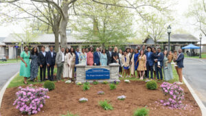 On a day “filled with the hope of spring,” as Board of Trustees Chair Lisa Bisaccia ’78 described it, a crowd of Trinity College faculty, staff, and students as well as members of the extended Borges family and alums, many who had come from across the country to witness the event, gathered to celebrate the dedication of the Manuel and Maria Luisa Lopes Borges Admissions Center. Reflecting upon the significance of the moment, President Joanne Berger-Sweeney described the dedication as “both personal and communal, historic and symbolic, and a strong statement of the importance of inclusion.”